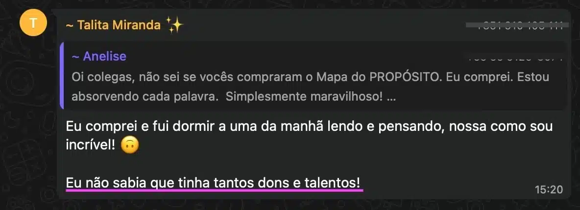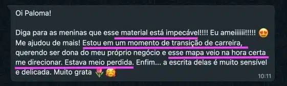 Assim que você efetuar o pagamento receberá, em até 15 minutos, um e-mail e uma mensagem em seu número do WhatsApp para gerar o seu Mapa. Caso não encontre, verifique a lixeira eletrônica/spam.